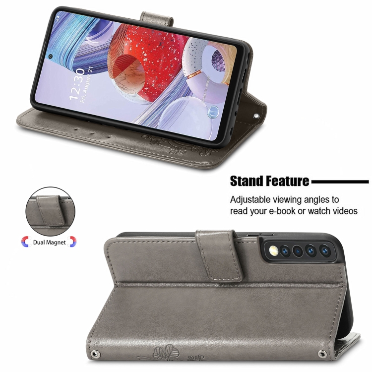 Funda de Cuero para LG Stylo 7 4G con Cierre de Cuatro Hojas, Ranura para Tarjeta y Soporte (Gris)
