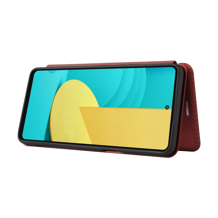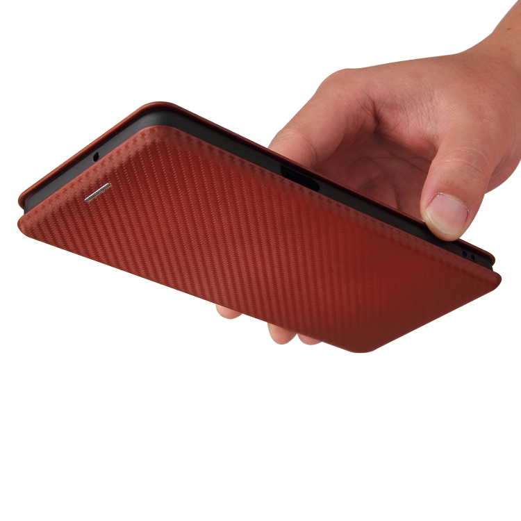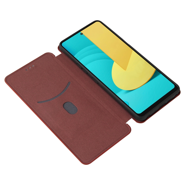 Carcasa para LG Stylo 7 5G Cuero con Textura Fibra de Carbono Magnética Tapa Horizontal TPU + PC + PU Ranura Tarjeta (Marrón)