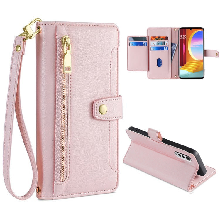 Funda de Cuero para Teléfono LG Velvet Sheep Texture Cross-Body Zipper Wallet (Rosa)