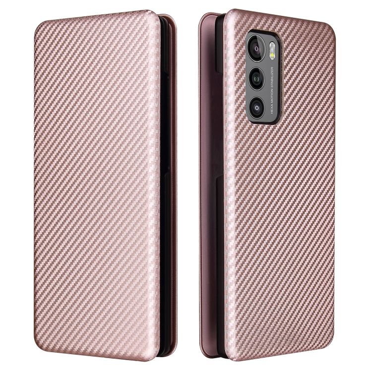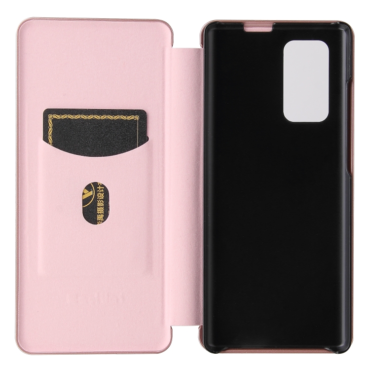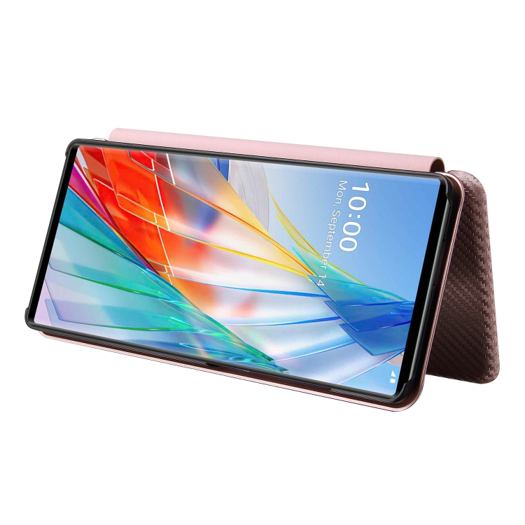 Carcasa para LG Wing 5G Cuero con Textura Fibra de Carbono Magnética Tapa Horizontal TPU + PC + PU Ranura Tarjeta (Rosa)