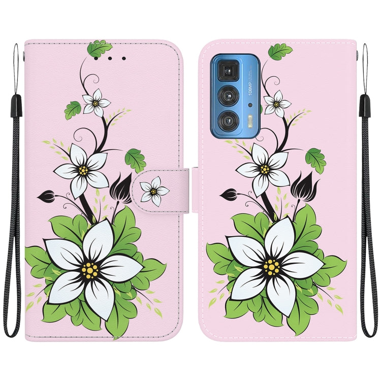 Funda de Cuero para Motorola Edge 20 Pro con Dibujo Coloreado y Textura de Cristal (Lirio)
