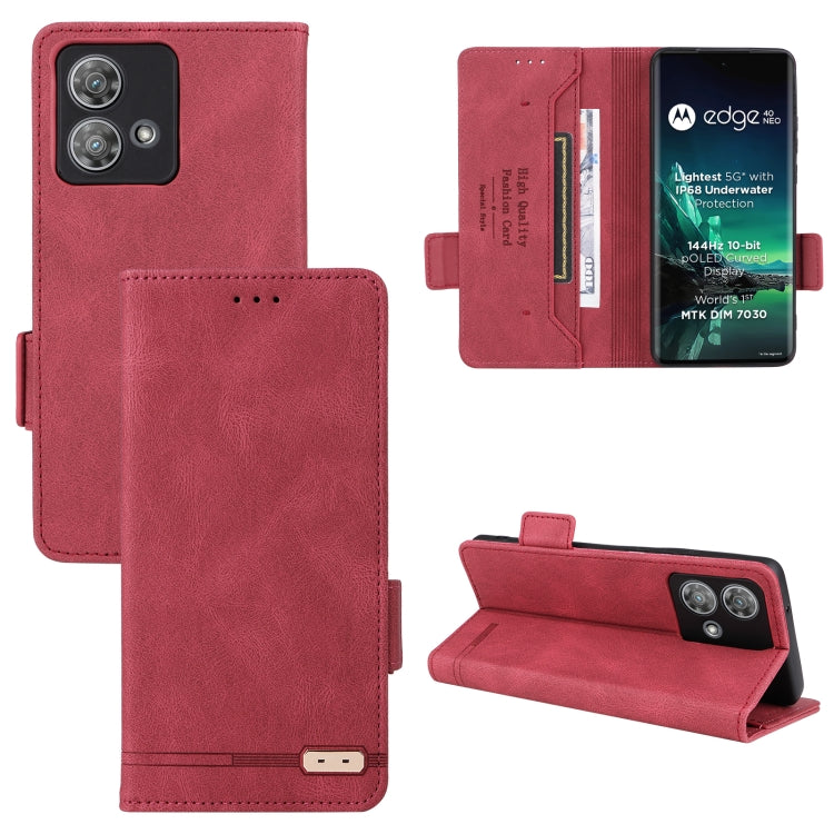 Funda de Cuero para Motorola Edge 40 Neo con Cierre Magnético (Rojo)