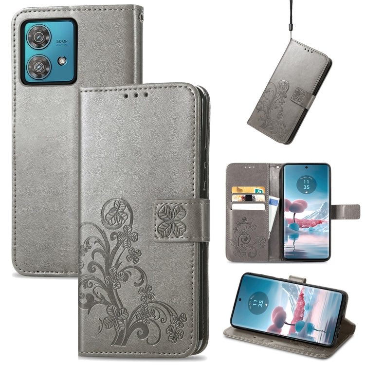 Funda para Motorola Edge 40 Neo de Cuero Repujado con Cierre de Cuatro Hojas (Gris)