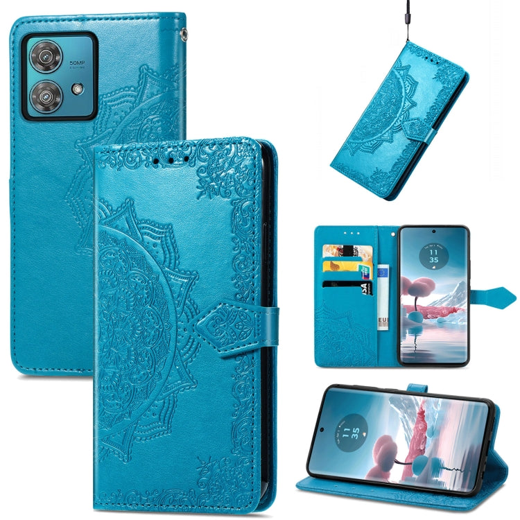 Funda de Cuero Mandala Flower para Motorola Edge 40 Neo en Relieve (Azul)