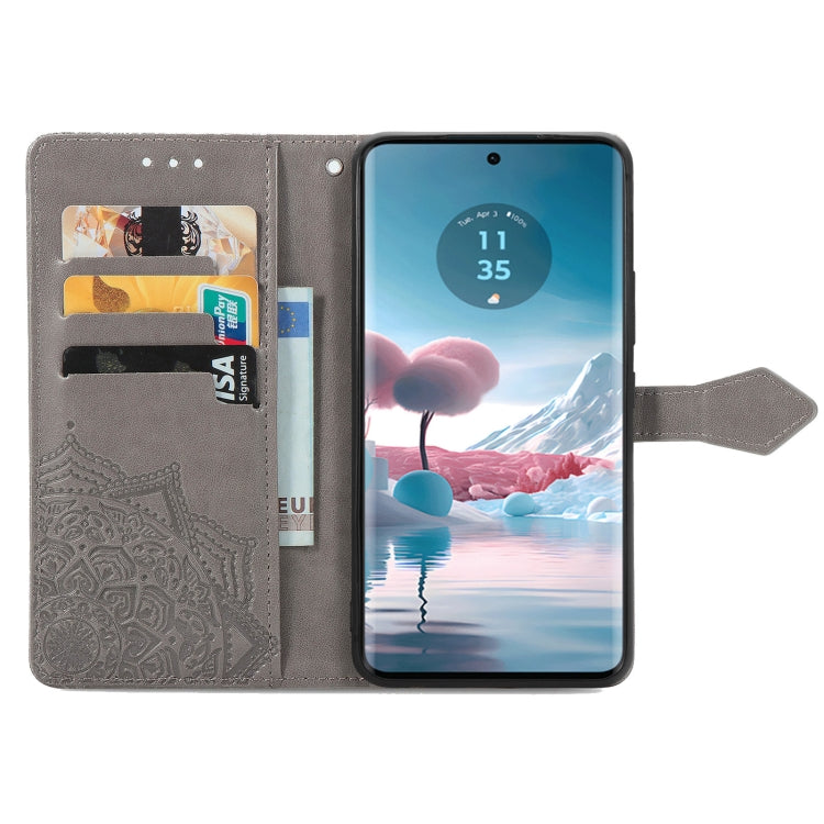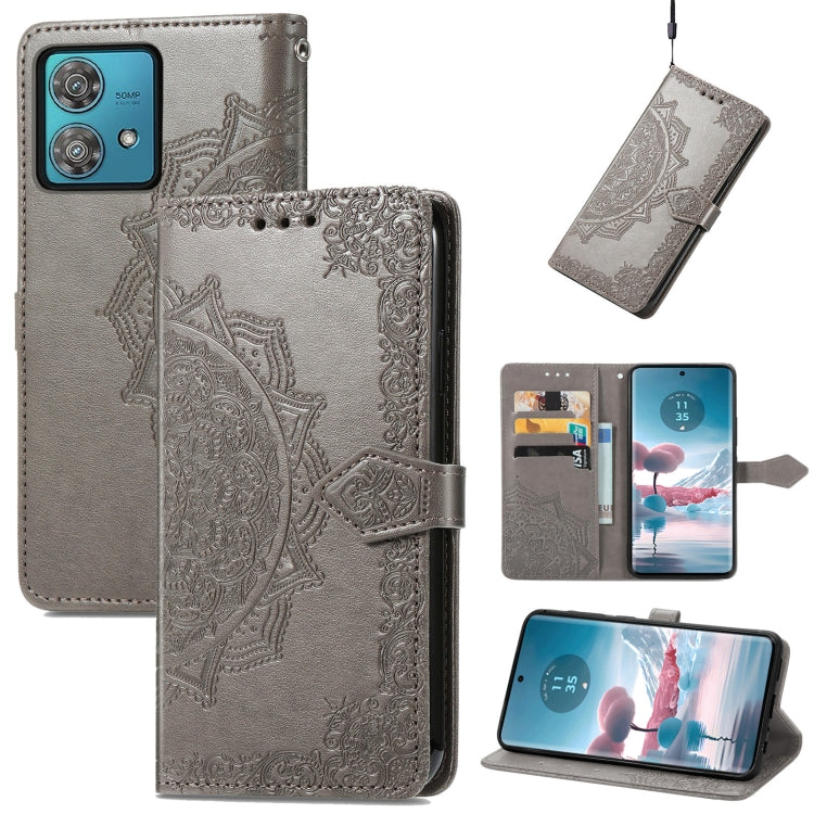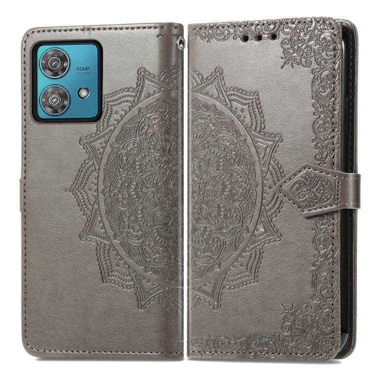 Funda de Cuero para Motorola Edge 40 Neo Mandala Flower en Relieve (Gris)