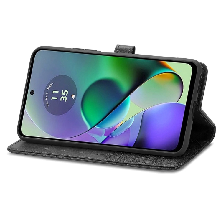 Funda para Motorola G54 5G de Cuero con Relieve Flor de Mandala (Negro)