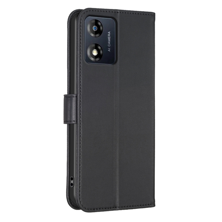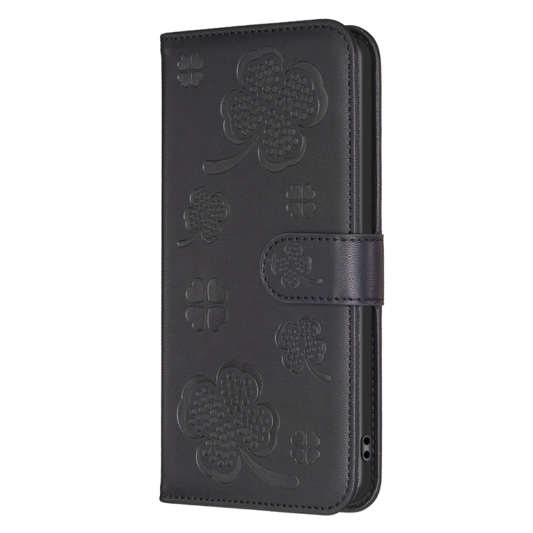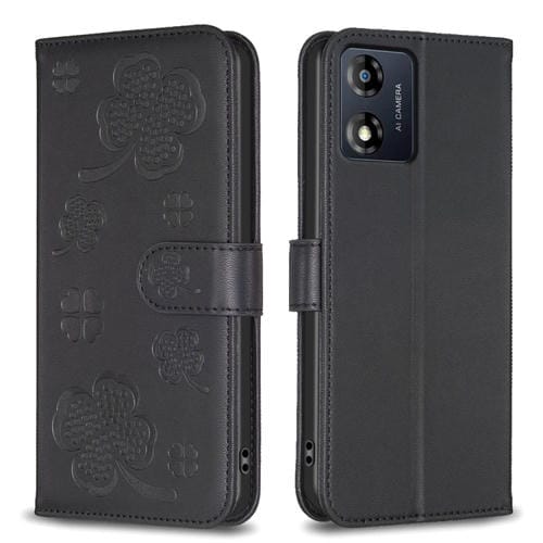 Funda de Cuero para Motorola Moto E13 4G con Relieve de Cuatro Hojas (Negro)