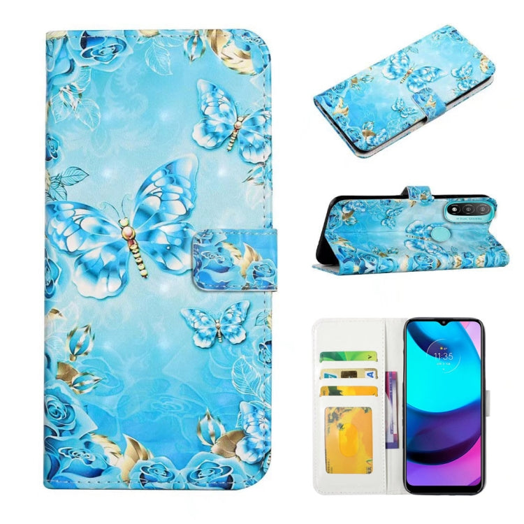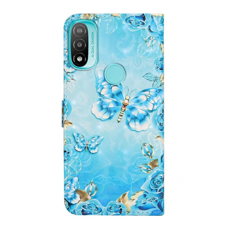 Funda para Motorola Moto E20 E30 E40 de Cuero con Dibujo 3D en Relieve al Óleo (Mariposas Azules)