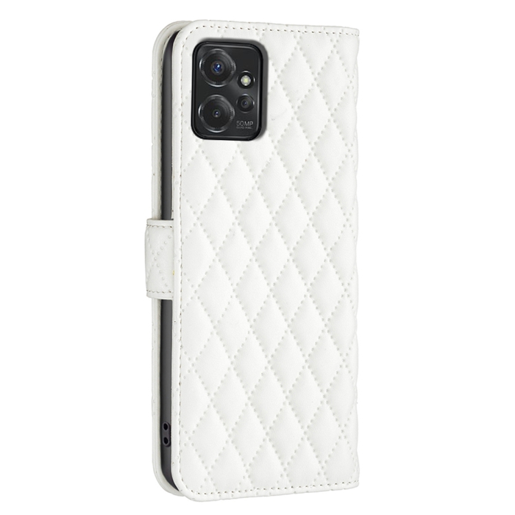 Funda de Cuero con Tapa para Motorola Moto G Power 5G 2024 (Blanco) Diamond Lattice Wallet