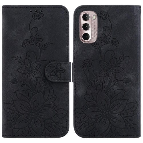 Funda para Motorola Moto G Stylus 4G 2022 de Cuero con Relieve Lily (Negro)