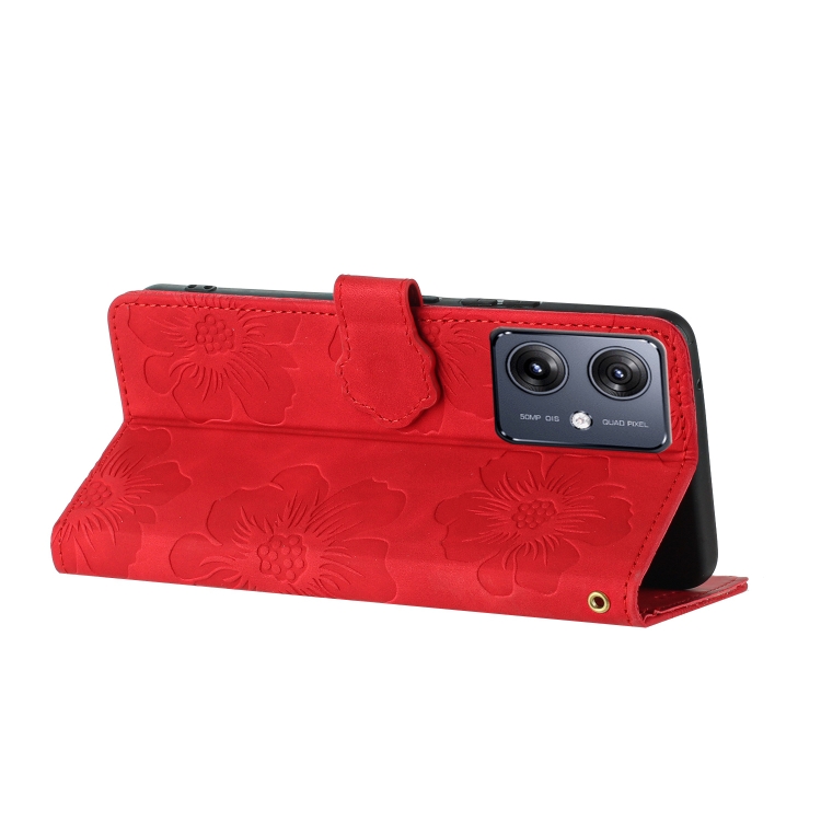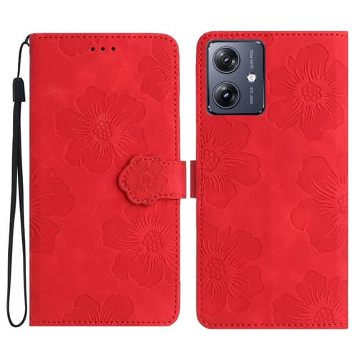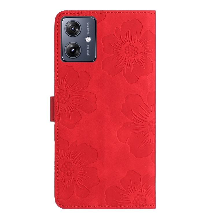 Funda de Cuero para Motorola Moto G14 4G con Estampado de Flores (Rojo)