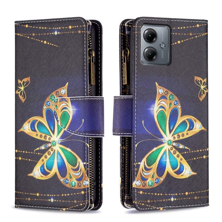 Funda de Cuero para Motorola Moto G14 4G con Cremallera y Dibujo Coloreado (Mariposa Grande)