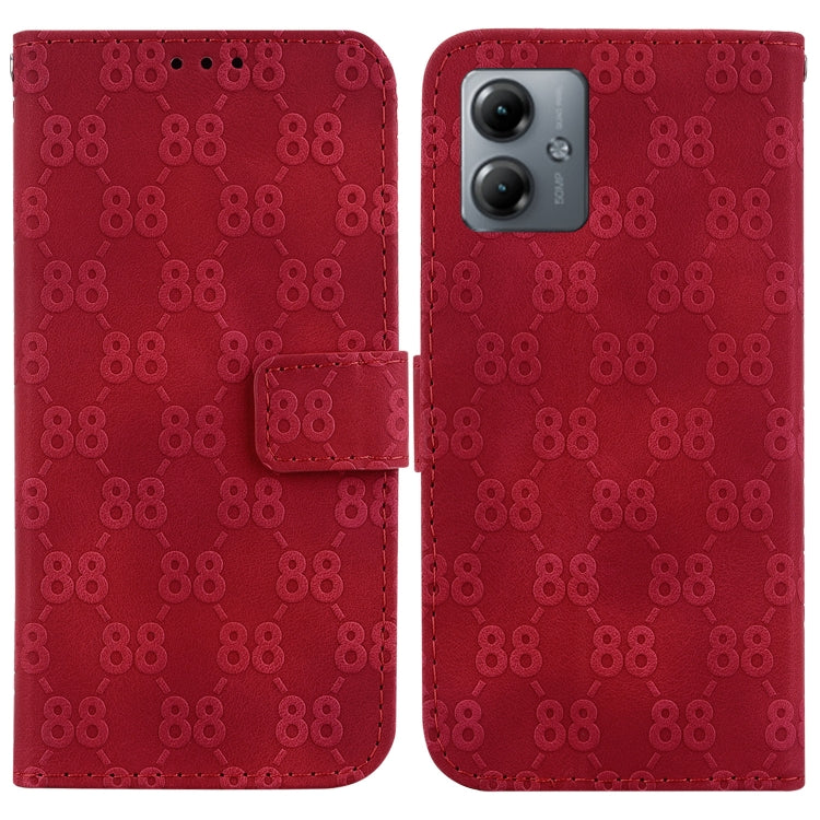 Funda para Motorola Moto G14 de Cuero con Relieve en Forma de 8 Doble (Rojo)