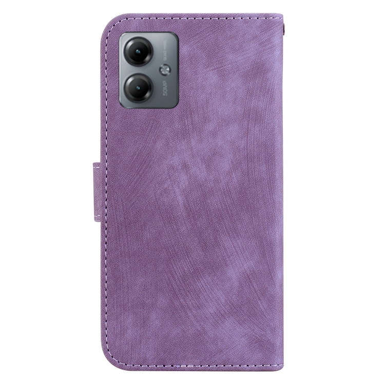 Funda de Cuero para Motorola Moto G14 Little Tiger con Relieve (Púrpura)