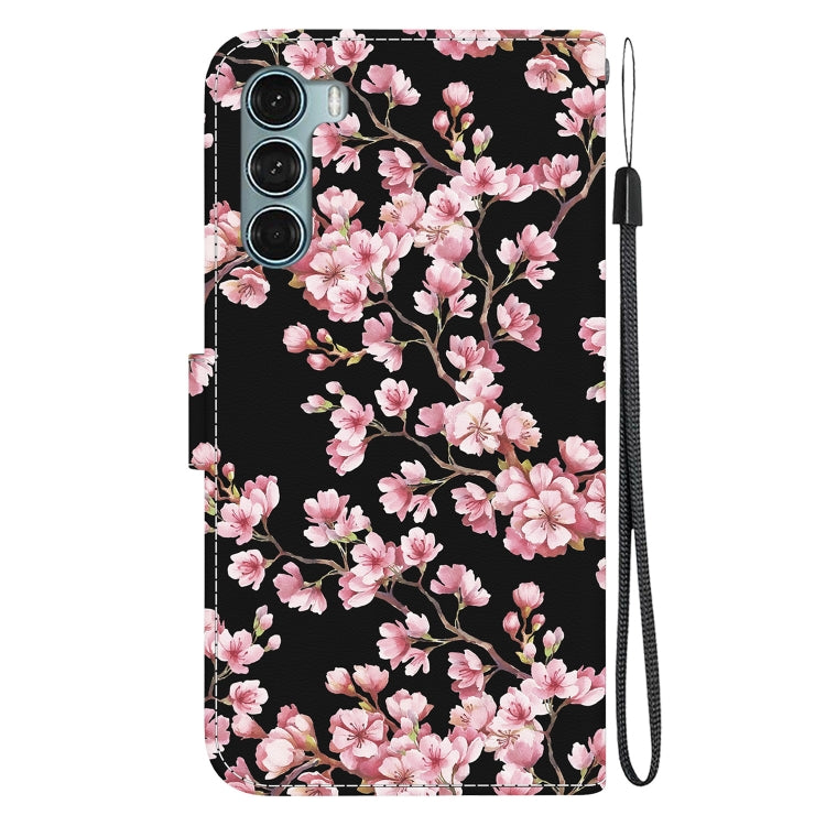Funda de Cuero para Motorola Moto G200 5G con Dibujo Coloreado y Textura de Cristal (Flor de Ciruelo)