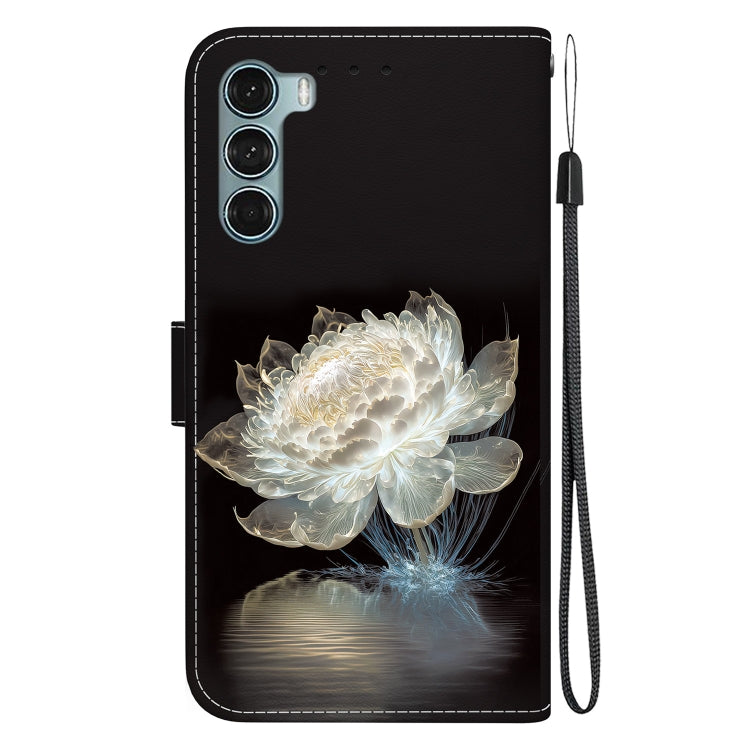 Funda de Cuero para Motorola Moto G200 5G con Dibujo Coloreado y Textura de Cristal (Peonía de Cristal)