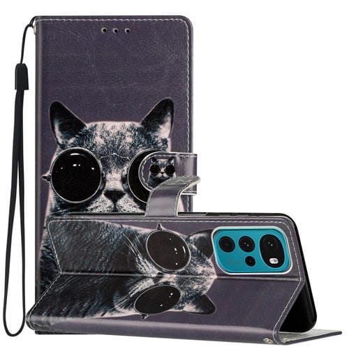 - 1x Estuche de Cuero para Motorola Moto G22 con Dibujo Coloreado Gafas de Sol Cat