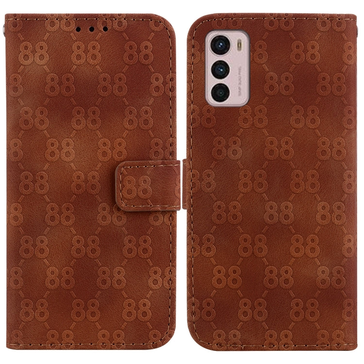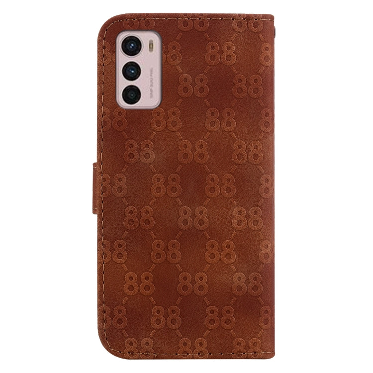 Estuche para Motorola Moto G42 de Cuero en Relieve con Doble Forma de 8 (Marrón)