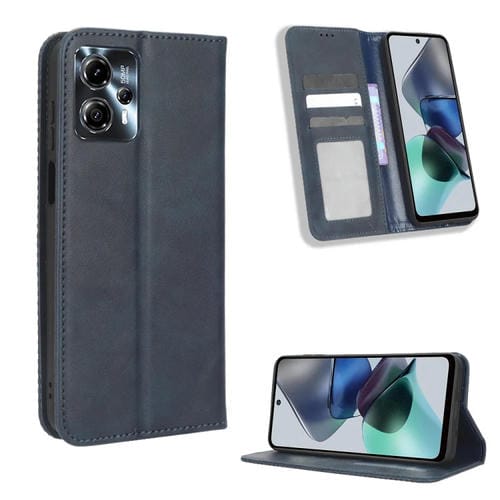 Funda de Cuero para Motorola Moto G53 / G13 con Hebilla Magnética y Textura Retro (Azul)
