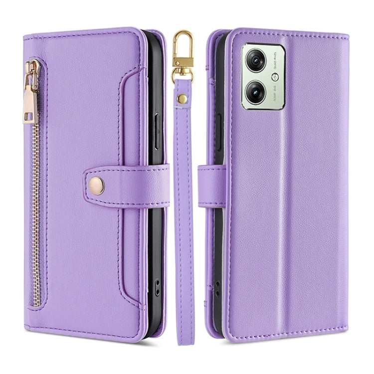 Funda de Cuero para Motorola Moto G54 5G Eu Edition Lite con Textura de Oveja y Cremallera Cruzada (Púrpura)