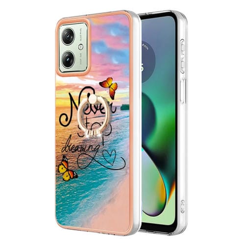 Funda para Motorola Moto G54 TPU con Galvanoplastia y Anillo (Mariposa de Ensueño)