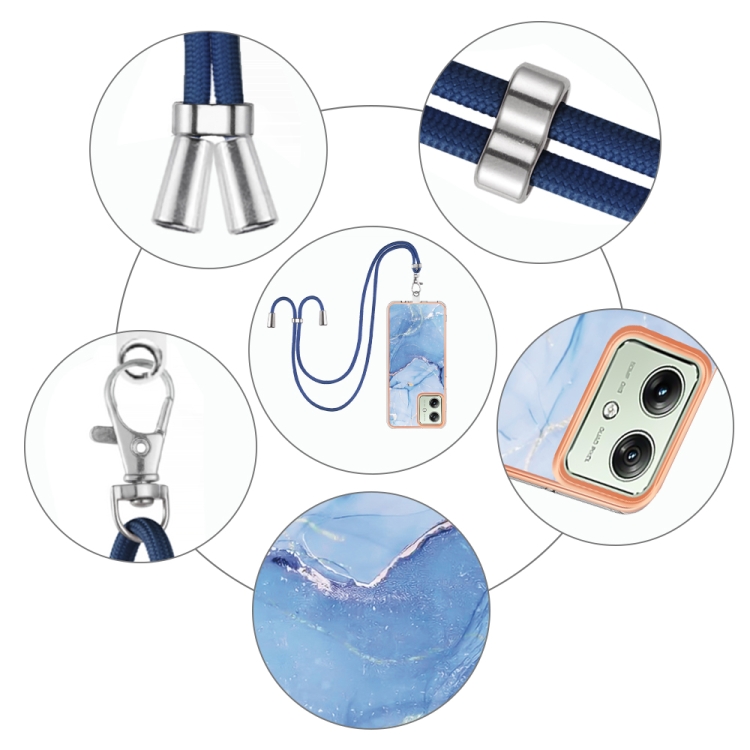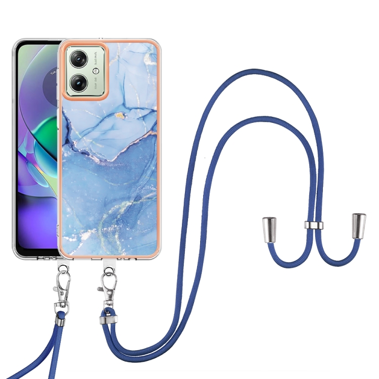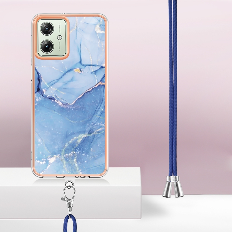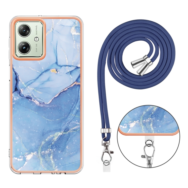 Estuche para Motorola Moto G54 IMD Doble Cara Mármol Galvanizado con Cordón (Azul)