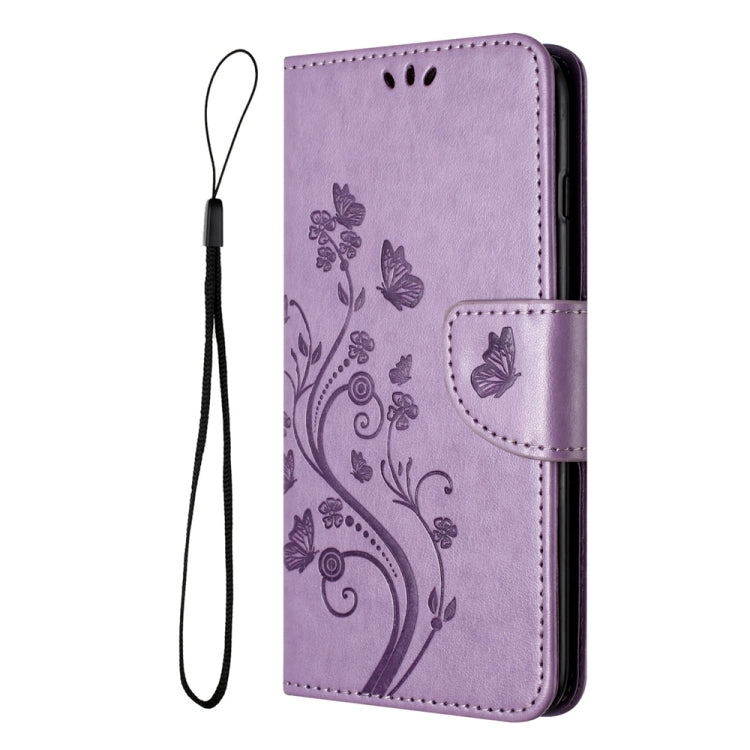 Funda para Motorola Moto G54 de Cuero con Tapa y Patrón de Flores de Mariposa (Púrpura Claro)