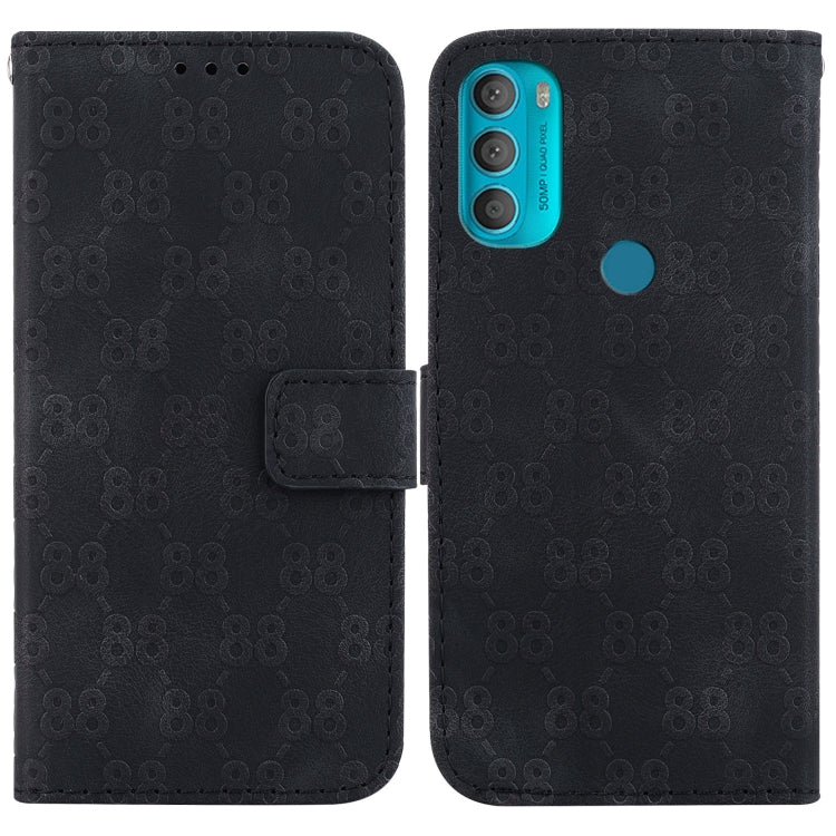 For Motorola Moto G71 5G Double 8 Shape Embossed Leather Phone Case (Black)