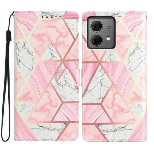 Funda de Cuero para Motorola Moto G84 5G con Dibujo Coloreado Mármol Rosa