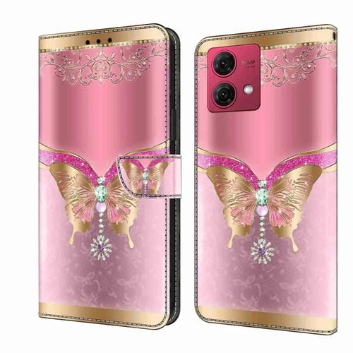 Funda Protectora de Cuero para Motorola Moto G84 Crystal 3D a Prueba de Golpes (Mariposa Inferior Rosa)