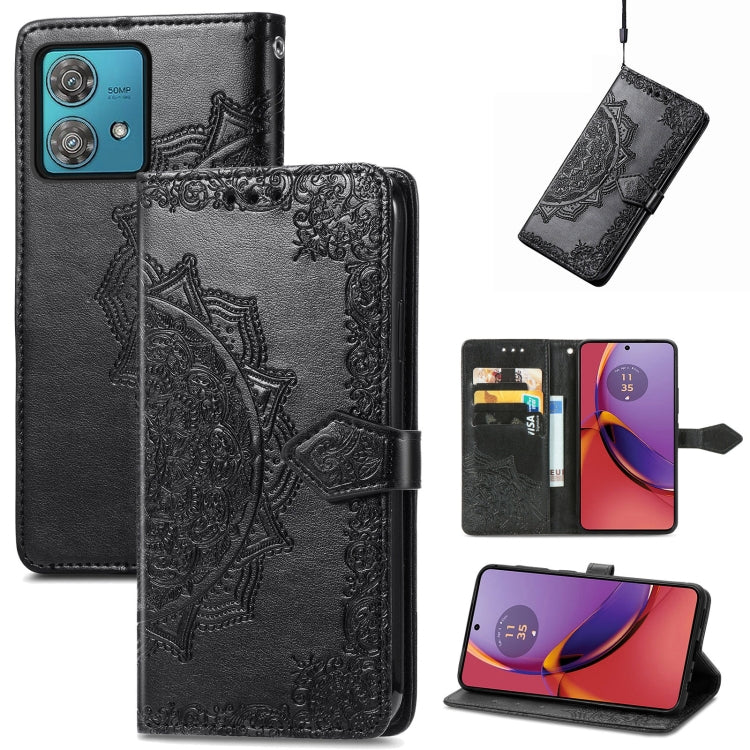 Funda para Motorola Moto G84 de Cuero con Estampado de Flores Mandala (Negro)