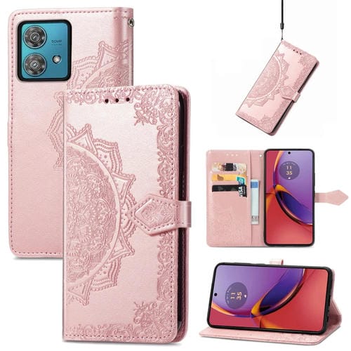Funda para Motorola Moto G84 de Cuero con Estampado de Flores Mandala (Oro Rosa)
