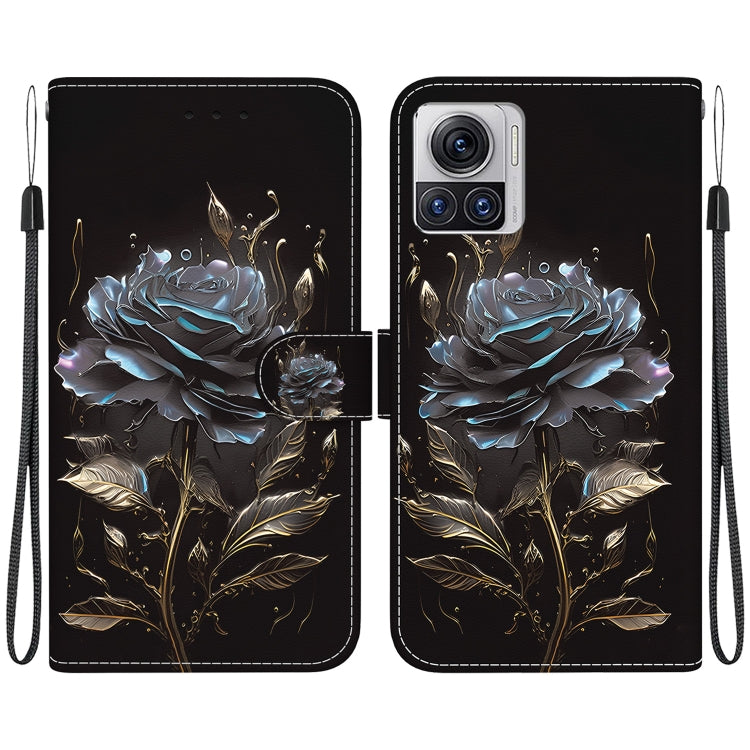 Funda de Cuero para Motorola Moto X30 Pro 5G con Dibujo Coloreado y Textura de Cristal (Rosa Negra)