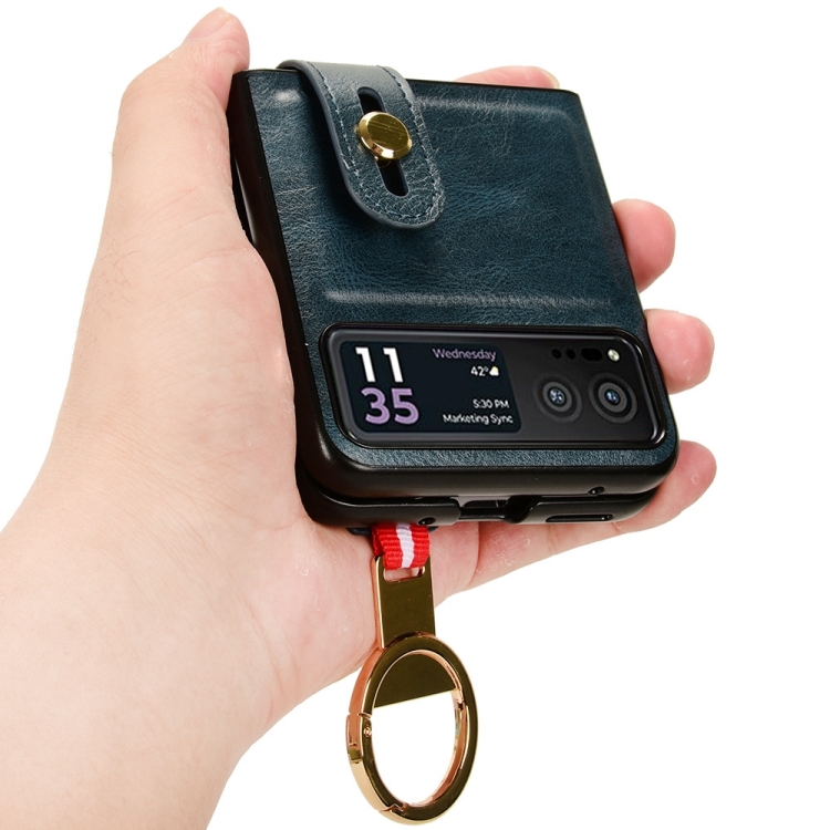 Funda Trasera de Cuero para Motorola Razr 40 con Pulsera (Azul)