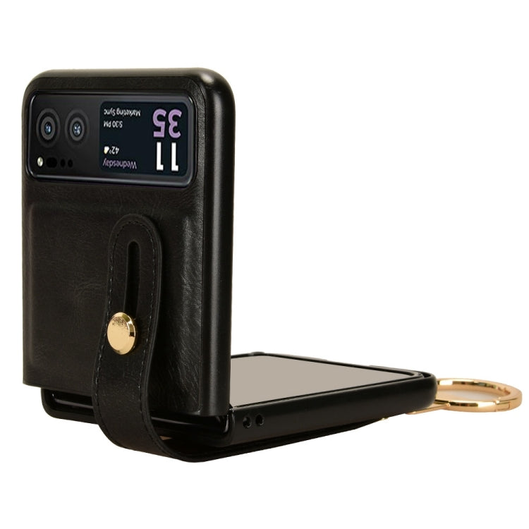Funda Trasera de Cuero para Motorola Razr 40 con Pulsera (Negro)