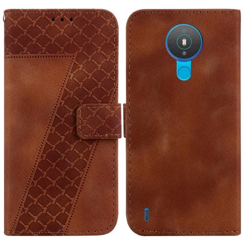 Estuche para Nokia 1.4 de Cuero en Relieve en Forma de 7 (Marrón)