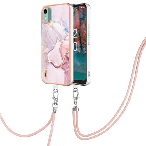 Estuche para Nokia C12 IMD Doble Cara Mármol Galvanizado con Cordón (Oro Rosa)