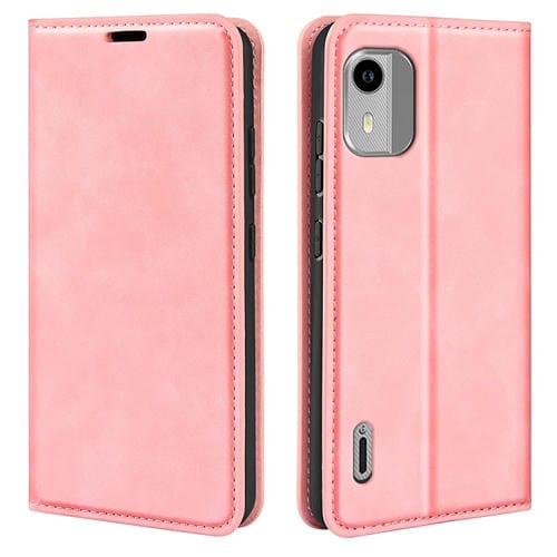 Funda de Cuero Retro-Skin para Nokia C12 con Succión Magnética (Rosa)