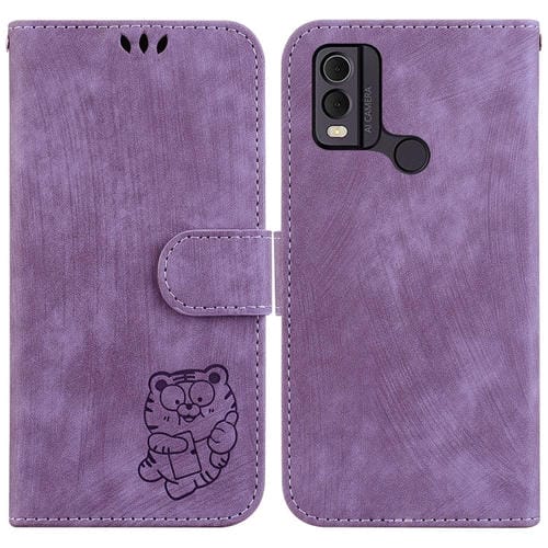 For Nokia C22 Little Tiger Embossed Leather Phone Case(Purple)