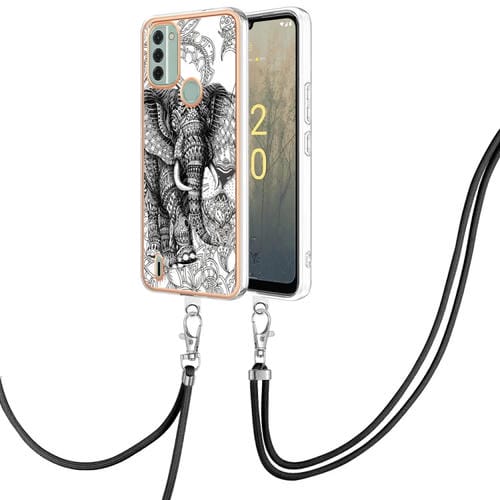 For Nokia C31 Double-sided Electroplating IMD Phone Case with Lanyard (Totem Elephant)