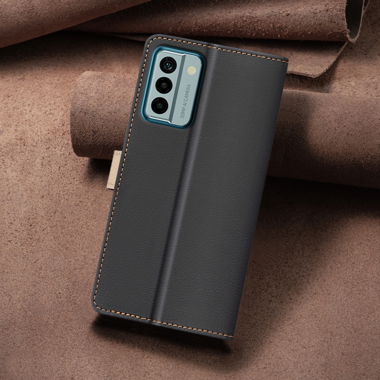 Funda de Cuero Antirrobo RFID para Nokia G22 a Juego de Colores (Negro)
