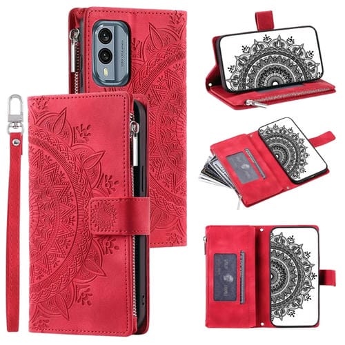 Funda para Nokia X30 de Cuero con Cremallera Totem y MultiTarjeta (Rojo)