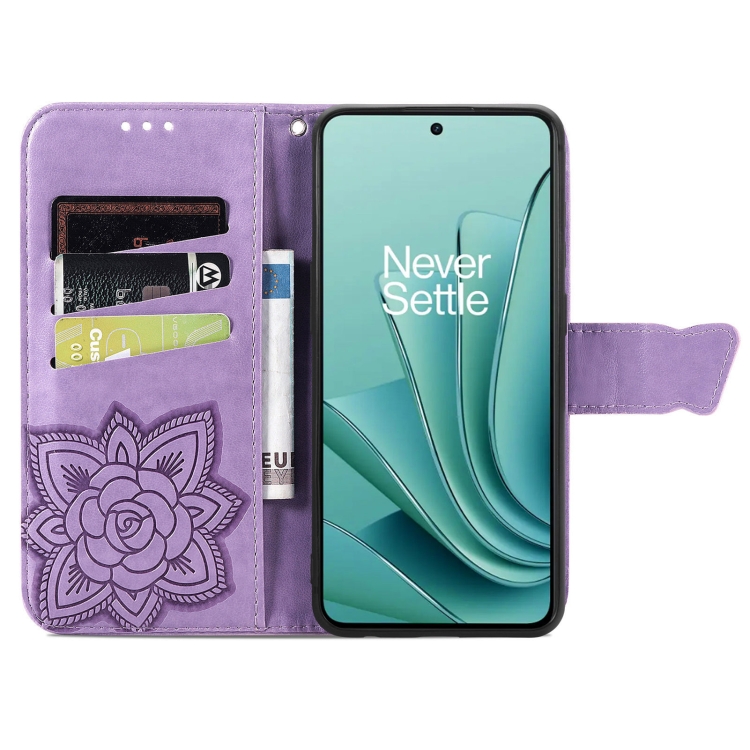 - 1x Estuche para OnePlus Ace 2V Butterfly Love Flower de Cuero en Relieve (Púrpura Claro)