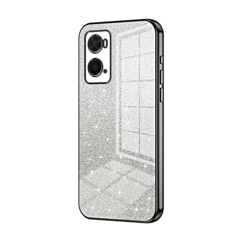 Para Oppo A36 / A76 / A96 4G Estuche para Teléfono Galvanizado con Polvo de Brillo Degradado Global (Negro)