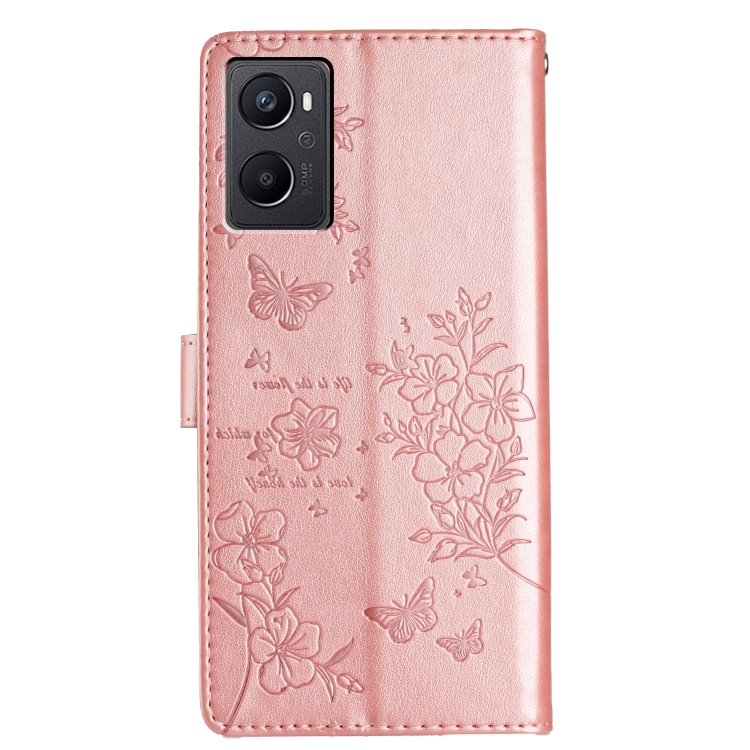 Para Oppo A36 / A76 / A96 Funda para Teléfono de Cuero con Relieve de Flor de Amor y Mariposa (Oro Rosa)