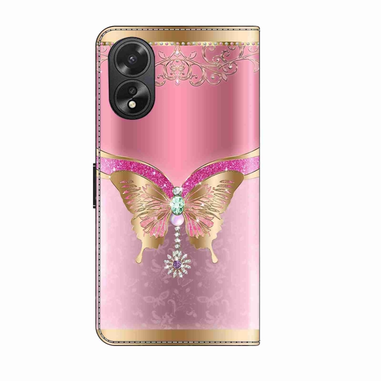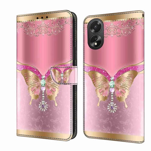 Para Oppo A38 4G Crystal 3D Funda Protectora de Cuero para Teléfono a Prueba de Golpes (Mariposa Inferior Rosa)