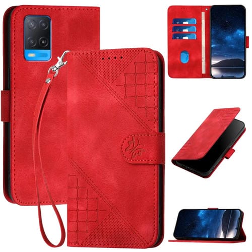 Para Oppo A54 5G / A74 5G Yx0080 Grid Butterfly Patrón En Relieve Funda de Cuero con Tapa para Teléfono con Cordón (Rojo)