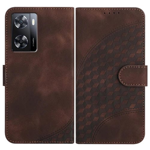 Para Oppo A57 4G Yx0060 Funda de Cuero para Teléfono con Relieve y Cabeza de Elefante con Cordón (Café)
