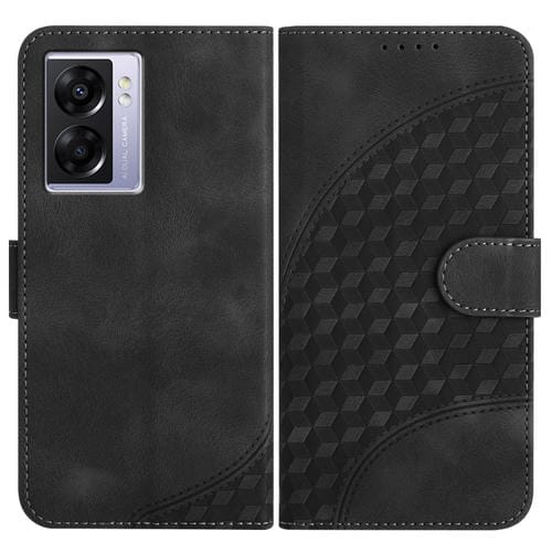 Para Oppo A57 5G / A77 5G / A57 4G Global Yx0060 Funda de Cuero para Teléfono con Relieve y Cabeza de Elefante con Cordón (Negro)