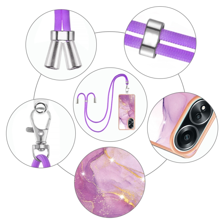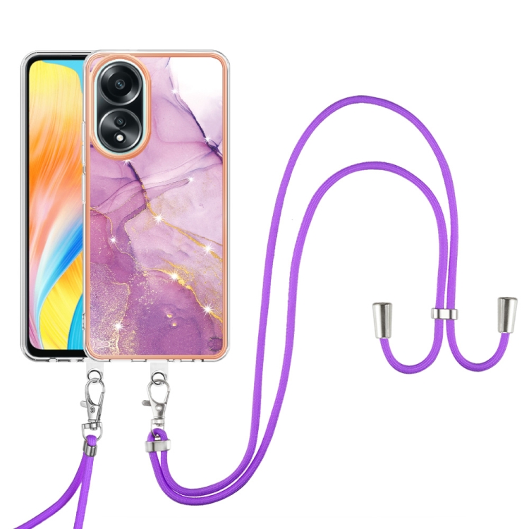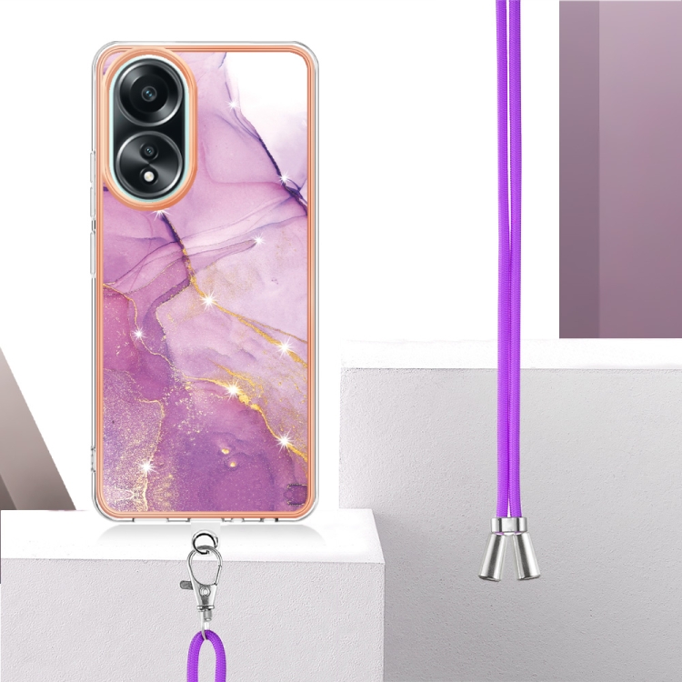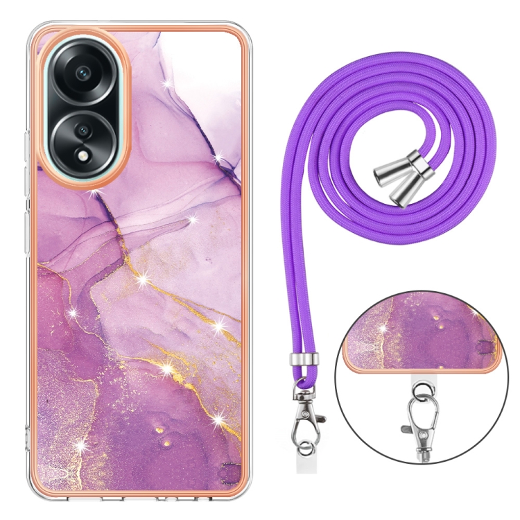 Para Oppo A58 4G Caja de Teléfono Imd de Doble Cara de Mármol Galvanizado con Cordón (Púrpura 001)